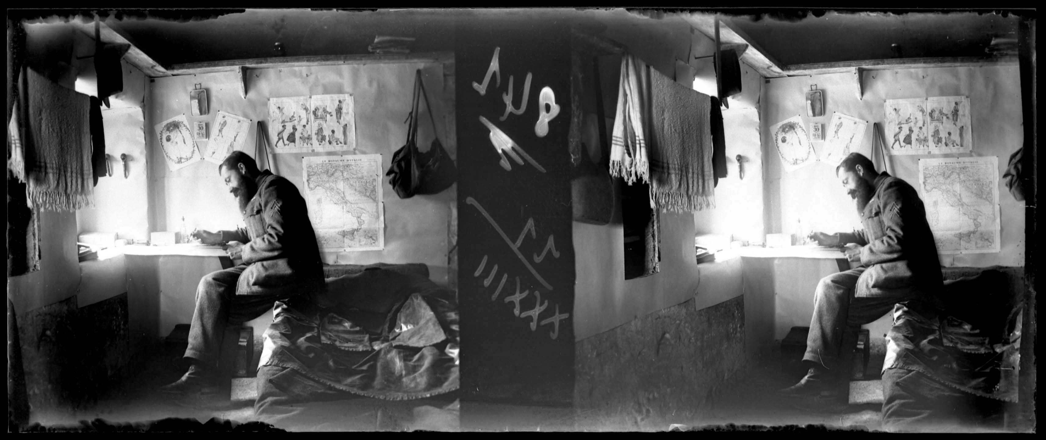 Les supports et types de documents sont variés : des négatifs et positifs sur plaques de verre, ainsi que des cartes sur lesquelles des tirages contacts étaient collés. Sur certaines d'entre elles, l’auteur a fait preuve d’une grande créativité, souhaitant accentuer l’aspect spectaculaire qu’apporte cette technique, en ajoutant de la peinture ou en réalisant de fines entailles pour laisser passer des filets de lumière. D'un autre côté, la stéréoscopie a également été utilisée dans un cadre plus réaliste et documentaire. Une grande partie des images provient de photographes mobilisés pendant la Première Guerre mondiale. Parmi elles, le fonds Louis Albinet, en cours de traitement, renferme plus de 2 000 stéréoscopies sur plaques de verre. Dès ma première découverte, j'ai été fascinée par ces clichés.