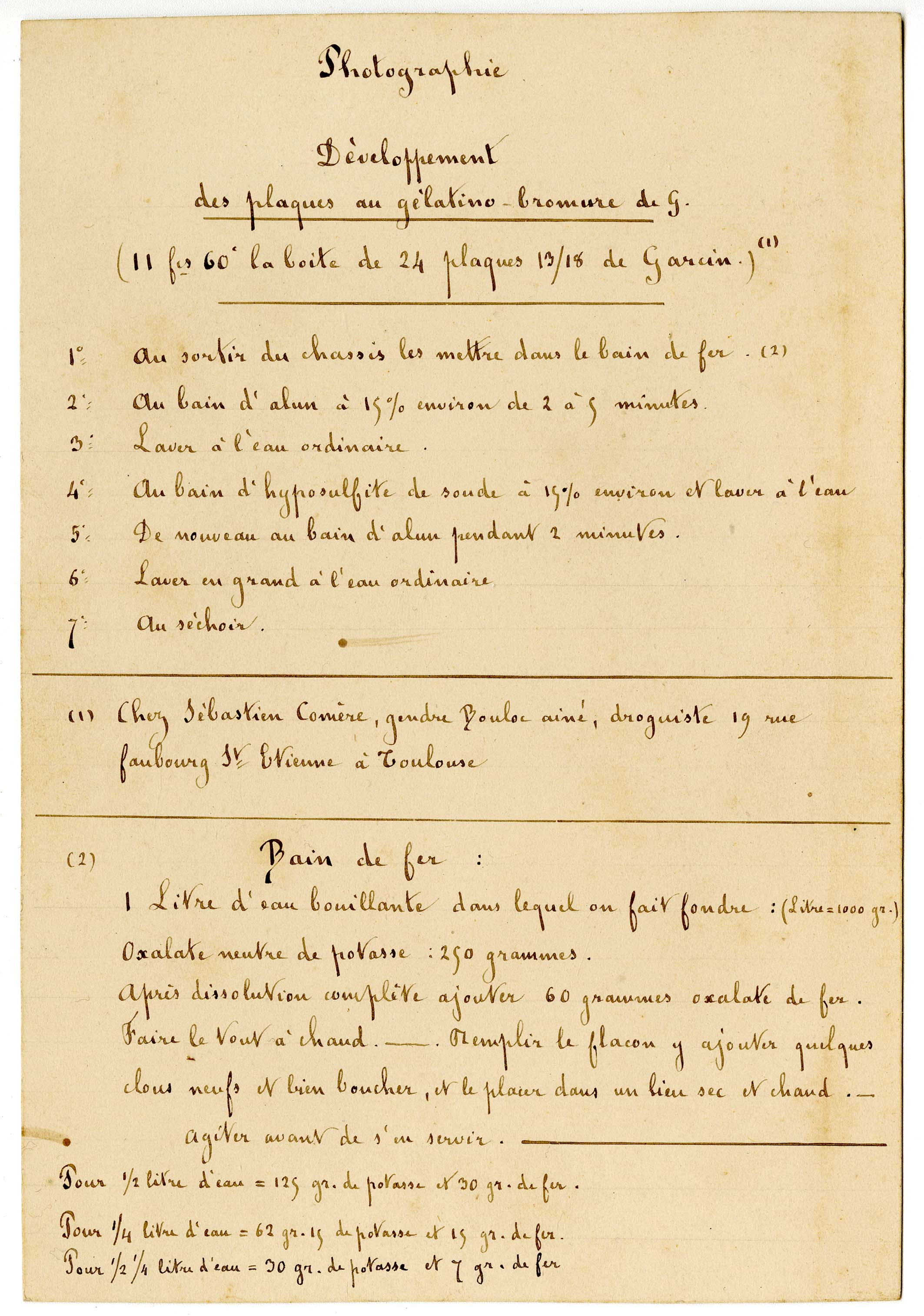 Dès 1944, Jean Dieuzaide écrit, d'abord à l'encre bleue, puis noire, au crayon à papier, au feutre, qui est l'un de ses outils favoris, notamment le fameux feutre marron. J'en trouve partout : dans les albums, sur les contacts, au dos des tirages de presse, des tirages d'exposition ou de collection, dans les dossiers, sur les courriers. La main est omniprésente à l'atelier Dieuzaide, celle de Jacqueline bien entendu, mais aussi celles de toutes les personnes qui y ont travaillé. La seule* qui utilise le feutre marron, c'est celle de Jean.