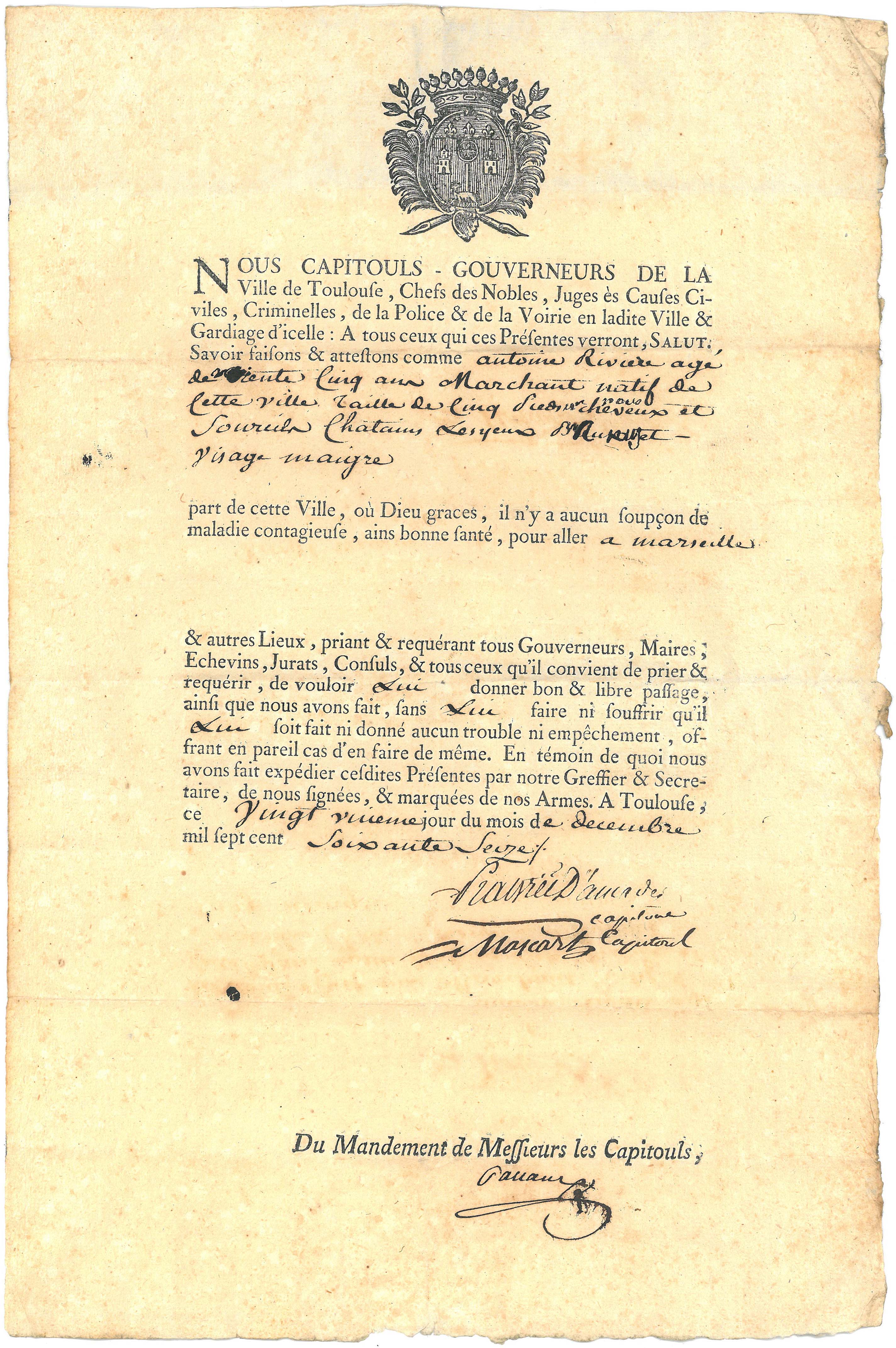 Ce n'est là qu'un exemple parmi de nombreux autres de cas de folie – ou bien de ses prémices, où les capitouls se trouvent confrontés à des individus qui leur font état de considérations mystiques. Car, en cette fin de 18e siècle, les magistrats municipaux toulousains ont désormais à « juger » sur les cas potentiels de démence qui leurs sont présentés. Ainsi, chaque affaire donne lieu à des dépositions de témoins, une audition de l'individu, et surtout une expertise médicale dont le résultat paraît sans appel2. Trouvé dément, l'individu est retranché de la société pour être envoyé au nouveau quartier des fous de l'hôpital de la Grave.