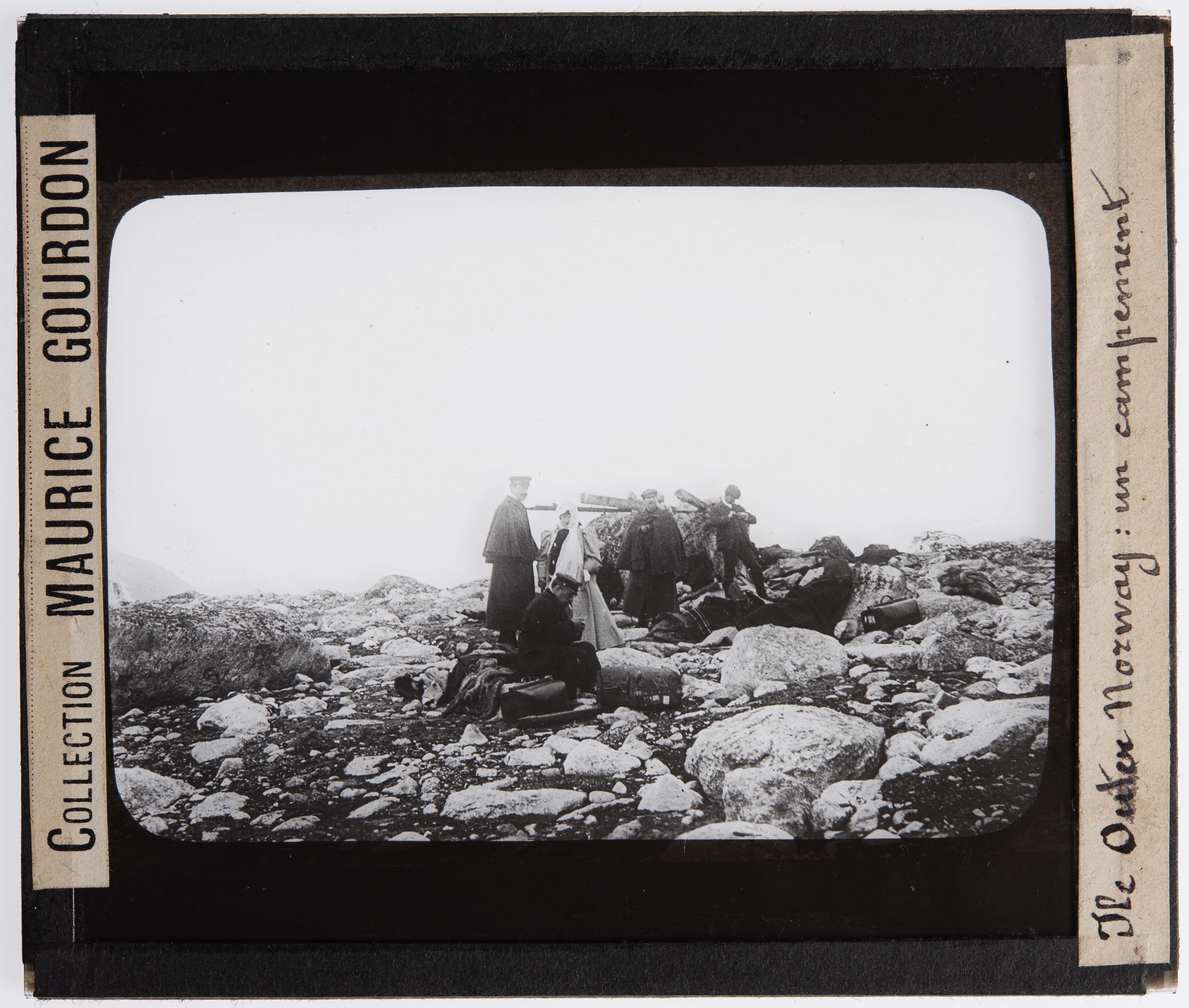 Le fonds Maurice Gourdon (1847-1941) est un bel aperçu des vacillations photographiques possibles. Photographe, dessinateur, géologue, toute son épopée est régie par ses deux passions : les Pyrénées et les sciences. Il est amené à parcourir des distances, grimpant sur des sentiers abrupts et montagneux, puis naviguant sur des eaux en direction de contrées éloignées à explorer. Bien au-delà des monts Pyrénéens, Maurice Gourdon va jusqu’à transbahuter avec lui son outillage photographique aux frontières de l’Arctique. Sur une durée de presque un mois, du 9 juillet ou 6 août 1906, il embarque avec 137 compagnons à bord de l’Île-de-France pour une croisière organisée par la Revue générale des sciences en direction de Spitzberg, une île norvégienne peuplée et située dans la mer du Groenland. Sur le bateau, une chambre noire, à destination des photographes, est aménagée. Il nous est aujourd’hui possible de retracer cette expédition à travers ses 199 plaques de verre dédiées à la projection. Elles sont numérotées, légendées, conservées dans 19 petites boîtes en carton qui sont rigoureusement inventoriées à la main dans un carnet. Des récits retracent aussi ce voyage, qu’on peut suivre à travers les mots d’Eugène Gallois dans Une croisière Française au Spitzberg, mais aussi via les écrits du scientifique Otto Nordenskjöld publiés dans la Revue générale des Sciences. Le fonds Maurice Gourdon, aujourd’hui en cours de traitement, n'attend que nous pour partir, avec ou sans roulette, à l’aventure ! Avec en ligne de mire, des températures glaciales à affronter, mais surtout des images insoupçonnées à découvrir.