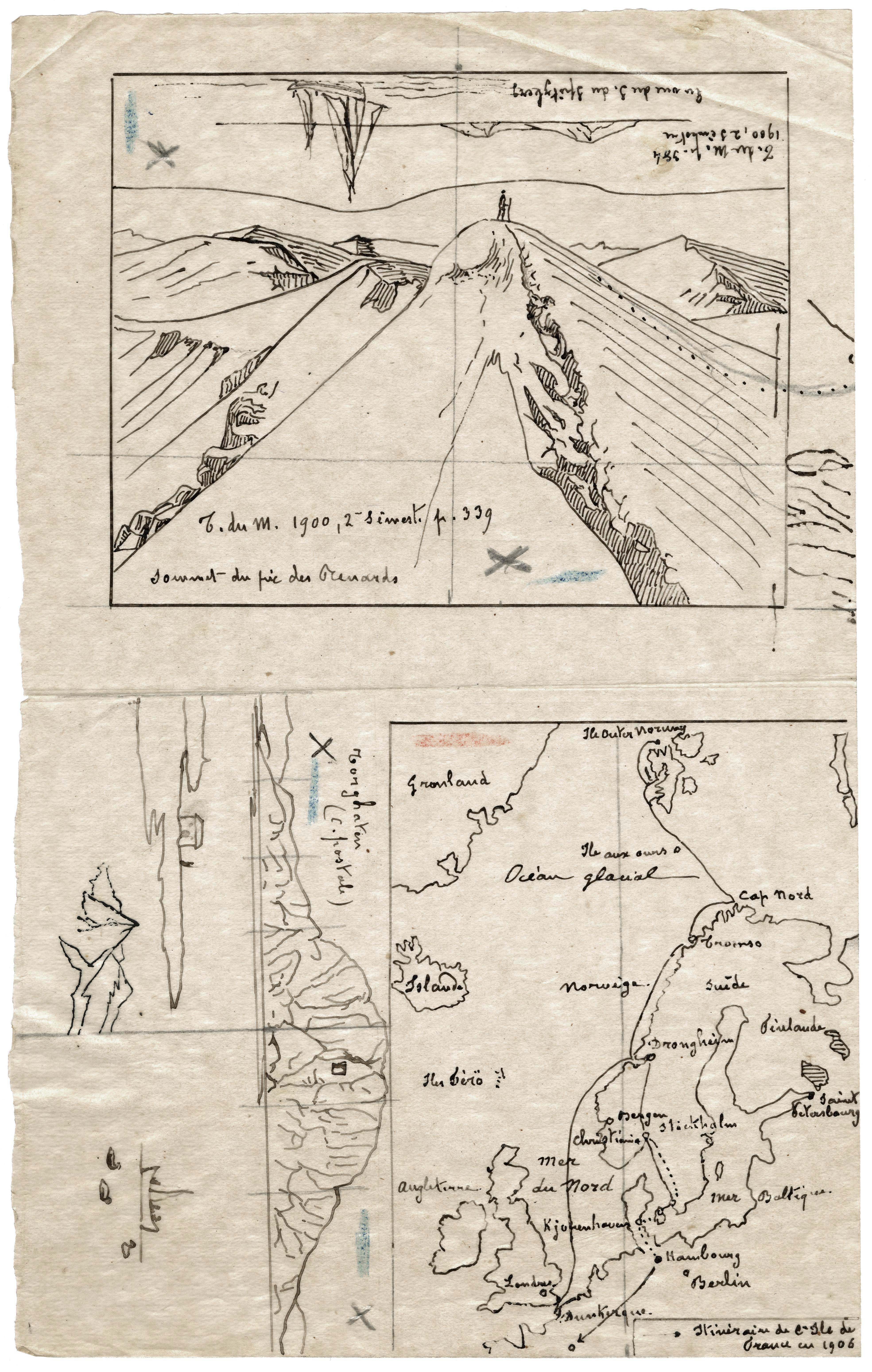 Dans le fonds du pyrénéiste Maurice Gourdon (1847-1942), de nombreuses boîtes cartonnées et annotées : « Spitzberg 1906 » renferment presque 200 plaques de projections numérotées et légendées retraçant l’itinéraire de ce voyage. Elles s’accompagnent de sources précieuses qui agrémentent l’histoire : des billets de train pour Dunkerque, un carnet répertoriant l’ensemble des images, des dessins sur calque, le programme imaginé et rédigé par le professeur Nordenskjold, un récit de voyage d'Eugène Gallois, des tirages signés de la main de Maurice Gourdon et des notes sur la faune et la flore étudiées sur place. Un brin nostalgique de mes pérégrinations estivales, sachez que je suis à deux doigts de créer un Polarsteps pour dépeindre, jour par jour, les différentes étapes de cet incroyable Boat Trip. Au pays du soleil de minuit, tout semblait si mirifique. Mais contre toute attente, les déconvenues vont finir par pointer le bout de leur nez, précipitant nos touristes dans la tourmente, et cela pendant 34 longues heures.